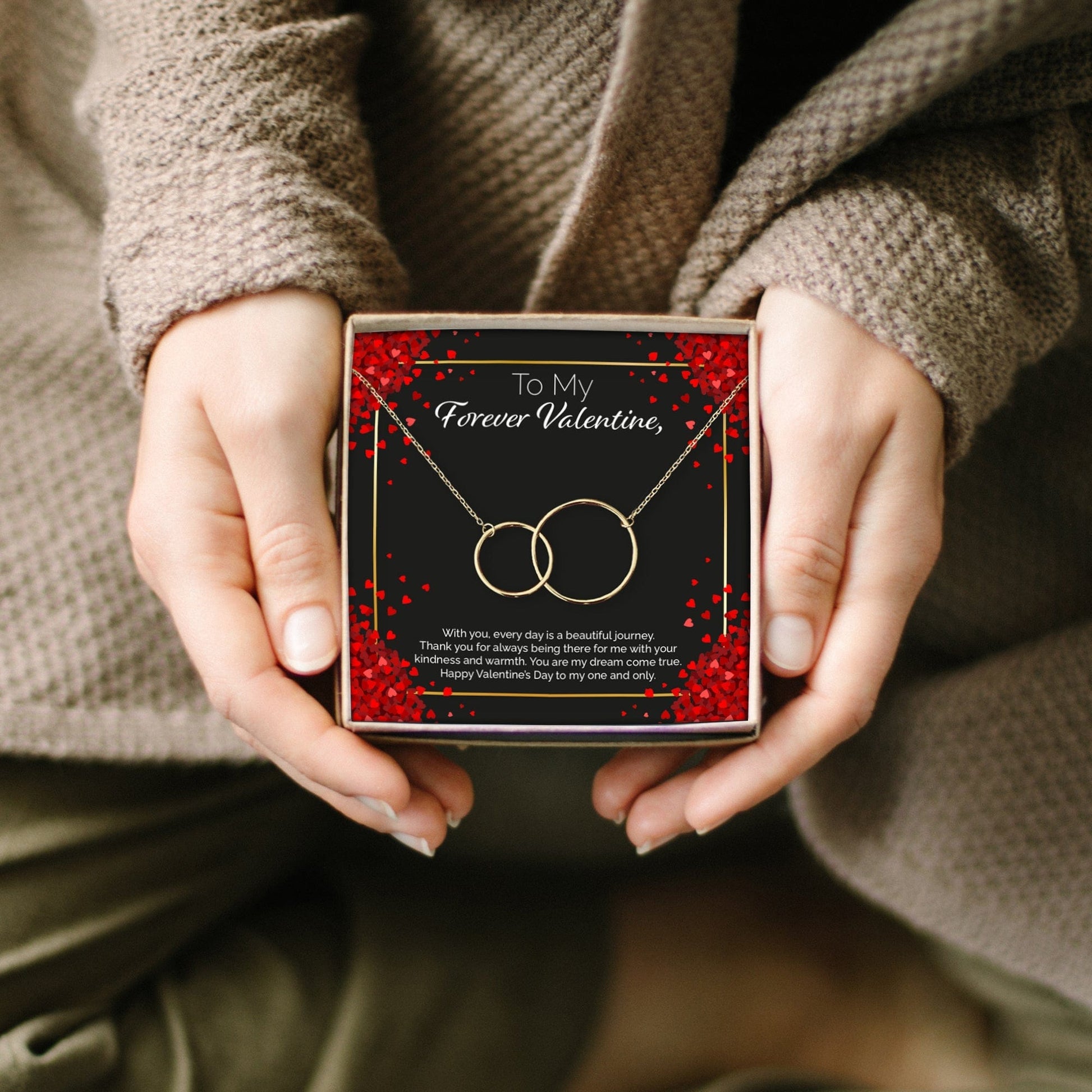 Celebrate your love and the unique bond you share this Valentine's Day with a gift that's as special as she is. Our exquisite interlocking circles necklace is more than just a piece of jewelry; it's a symbol of the unbreakable connection and deep affection that you both cherish.